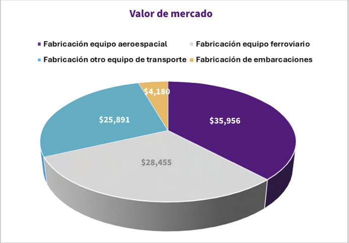 En contraste, el componente aeroespacial se posicionó como el principal motor del sector con una participación del 38% en la actividad total. Este rubro alcanzó un valor de 30,700 millones de pesos y una variación anual de 1.3%. Asimismo, la fabricación de embarcaciones sumó 2,800 millones de pesos, lo que representó una variación positiva marginal de 0.9%.